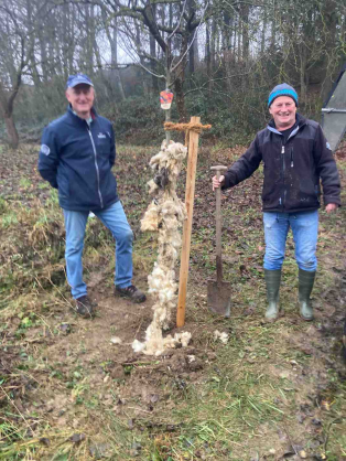 Das Naturprodukt Schafwolle schützt vor Wildverbiss und stellt einen nachhaltigen Dünger für die Bäume dar.
