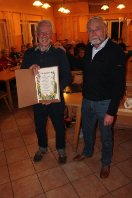 In der letzten Herbstversammlung am 06.11.2019 durfte der der 1. Vorsitzende des Gartenbau vereins Furth, Franz Hummel, Schober Franz zum Ehrenmitglied ernennen. In seiner Laudatio führte der Vorsitzende die überragenden Leistungen des Mitglieds auf.