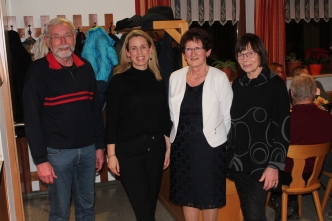 Bei der Spendenübergabe: v. l.: Vorsitzender Franz Hummel, Ina Haselbeck, Karoline Popp sowie Kassenwartin Dietlind von Feilitzsch.