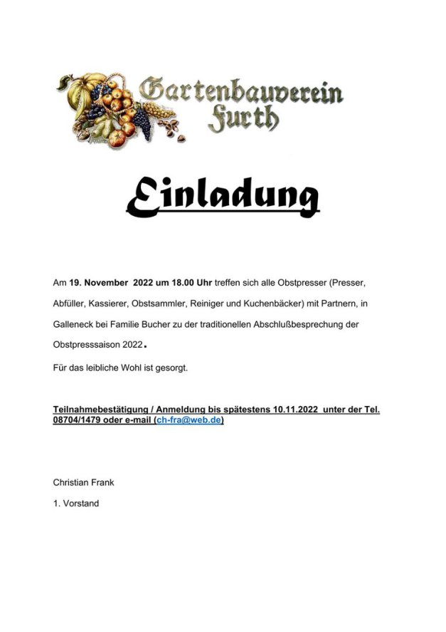 Einladung zum Presseressen
